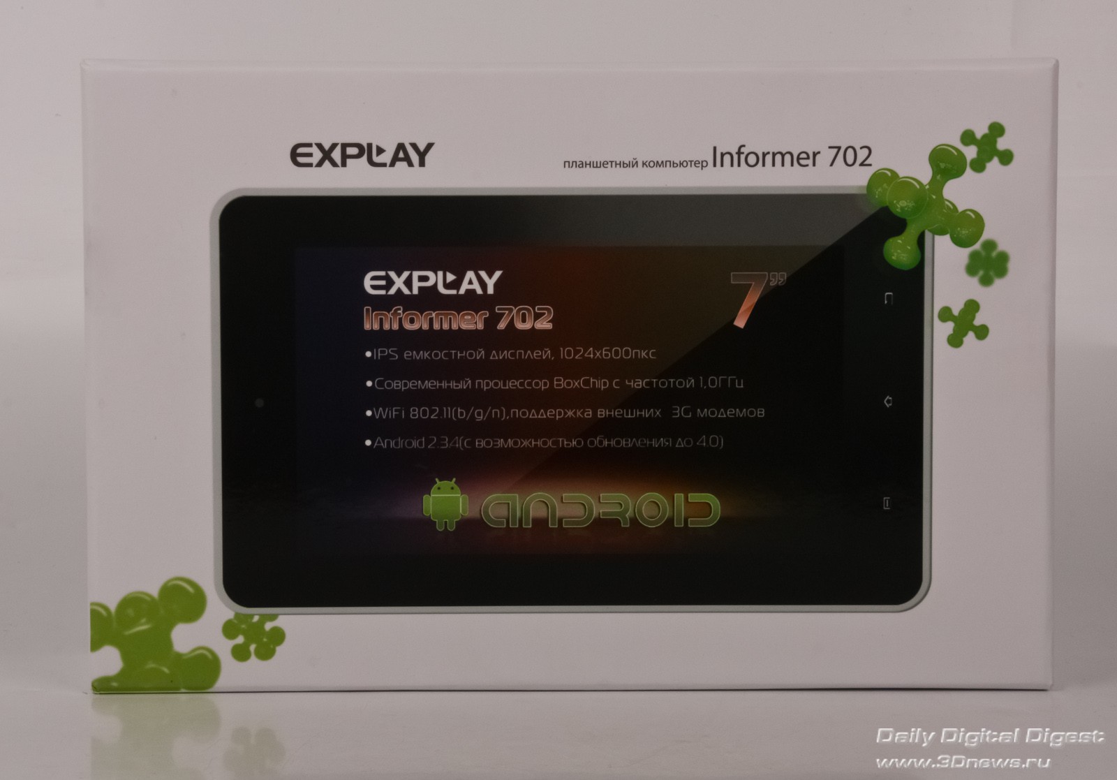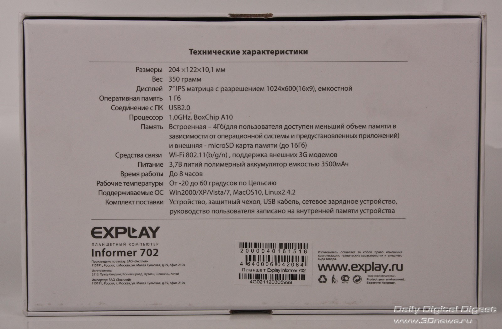 Explay Informer 702 поставляется в коробке из плотного картона с