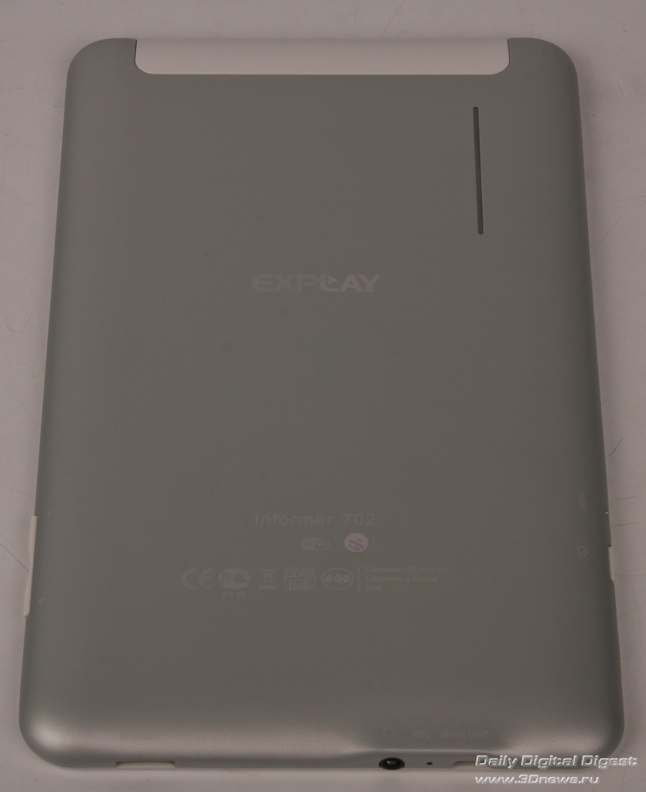 Тыльная сторона гаджета содержит прорезь динамика и немного технической информации. В целом аппарат собран качественно и надежно — люфтов нет, да и внешне смотрится очень неплохо.