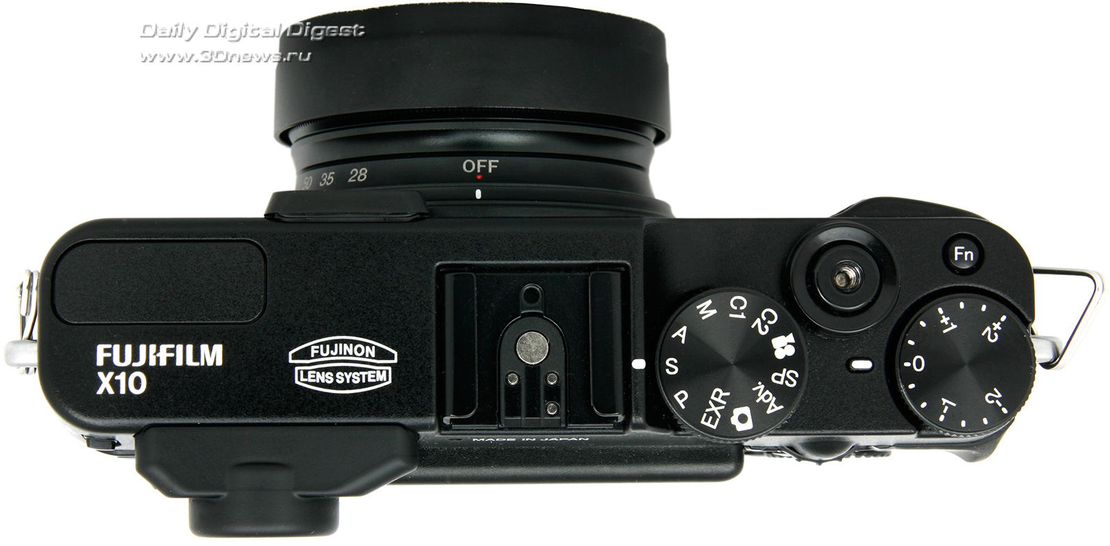 Окрылённая популярностью модели X100 компания Fujifilm вывела на рынок ещё одну камеру, выполненную в стиле ретро, — X10. Новинка хоть и оборудована меньшим по размерам сенсором (по меркам компактных фотоаппаратов он все еще достаточно крупный), но несколько более универсальна: фокусное расстояние не фиксированное, как в X100, а перекрываемый диапазон (28-112 мм в 35-мм эквиваленте) не так уж и мал — для большинства ситуаций его вполне достаточно. Нельзя не отметить и светосильную оптику: ƒ/2,0-2,8. Для сравнения: у Olympus XZ-1 с менее крупным сенсором — ƒ/1,8-2,5, у Panasonic Lumix DMC-LX5 — ƒ/2,0-3,3, у Canon PowerShot G12 и вовсе ƒ/2,8-4,5.