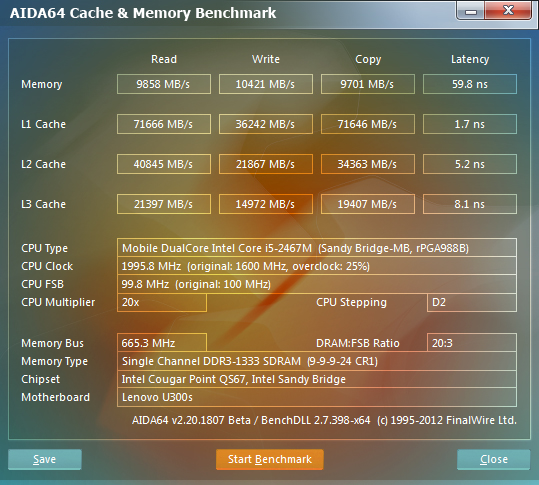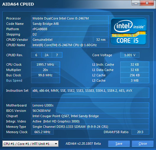 | Процессор | Intel Core i5-2467M: 1,6 ГГц (до 2,3 ГГц в режиме Turbo Boost); 2x256 Кбайт L2; 3 Мбайт L3; два вычислительных ядра |