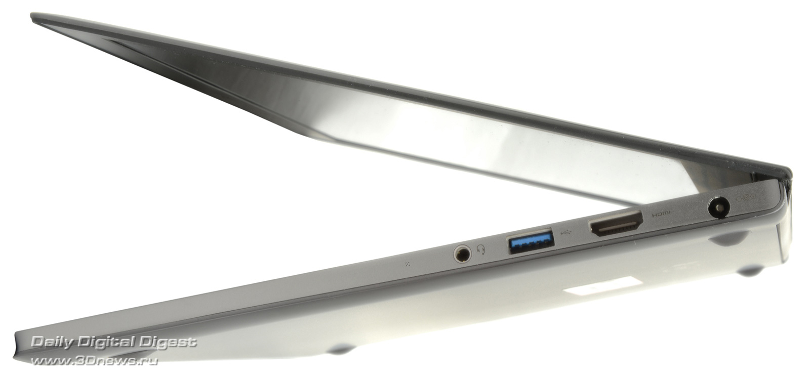 Правая часть загружена даже меньше: здесь конструкторы разместили комбинированный разъём для подключения наушников и внешнего микрофона, один порт USB 3.0, видеовыход HDMI и гнездо подключения внешнего питания.