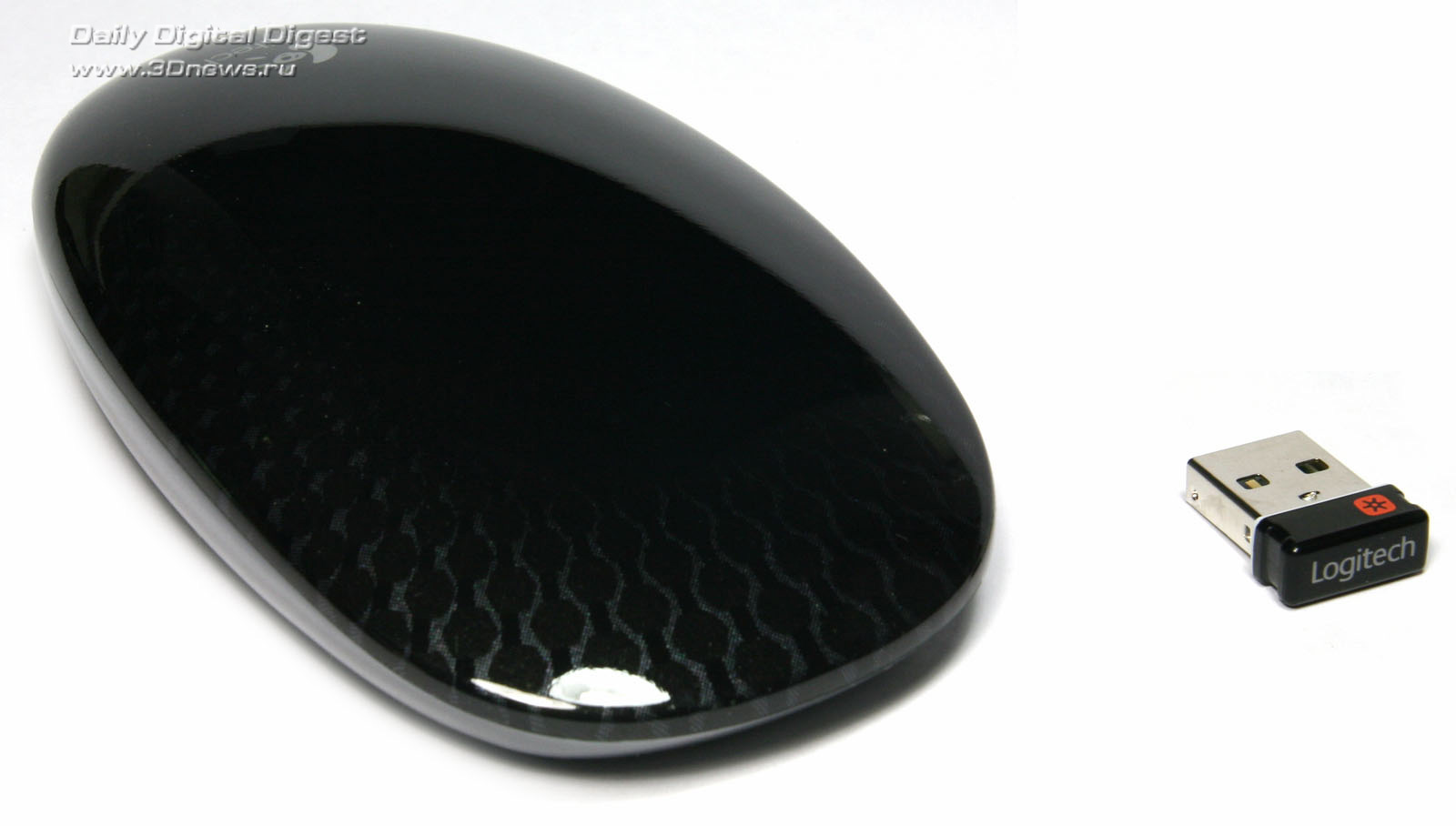 жуком из тропических лесов или фантастических фильмов.От модели Microsoft Touch Mouse мышь Logitech Touch Mouse M600 сильно отличается не только геометрией корпуса, но и материалом, из которого он изготовлен. Если первый манипулятор имеет приятное на ощупь шероховатое покрытие, то пластик новинки от Logitech и сверху, и снизу отполирован до зеркального блеска. Насколько удобно лаковое покрытие при работе, мы поговорим ниже. Пока же отметим, что покрытие хоть и качественное, но всё равно маркое. Мышь быстро покрывается отпечатками пальцев и теряет опрятный внешний вид.