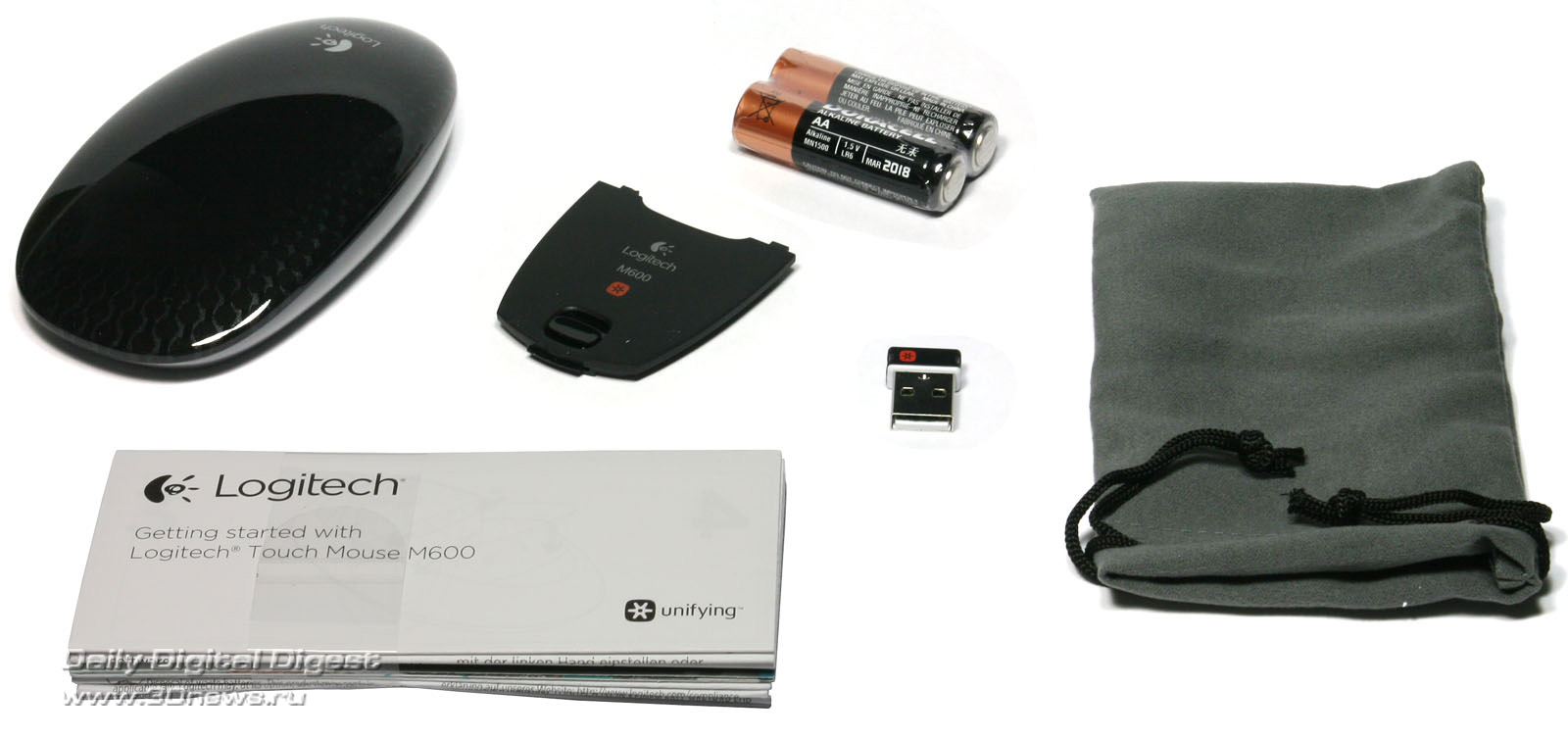 фирменный — Logitech Advanced Optical.Не мене интересна и выбранная схема питания. По умолчанию Logitech Touch Mouse M600 использует два элемента питания типа АА. Этой пары, по заявлению производителя, манипулятору хватает примерно на шесть месяцев работы (не непрерывной, конечно). Но при желании можно использовать и одну батарею. В этом случае срок работы уменьшится ровно в два раза, но сама мышь станет ощутимо легче.